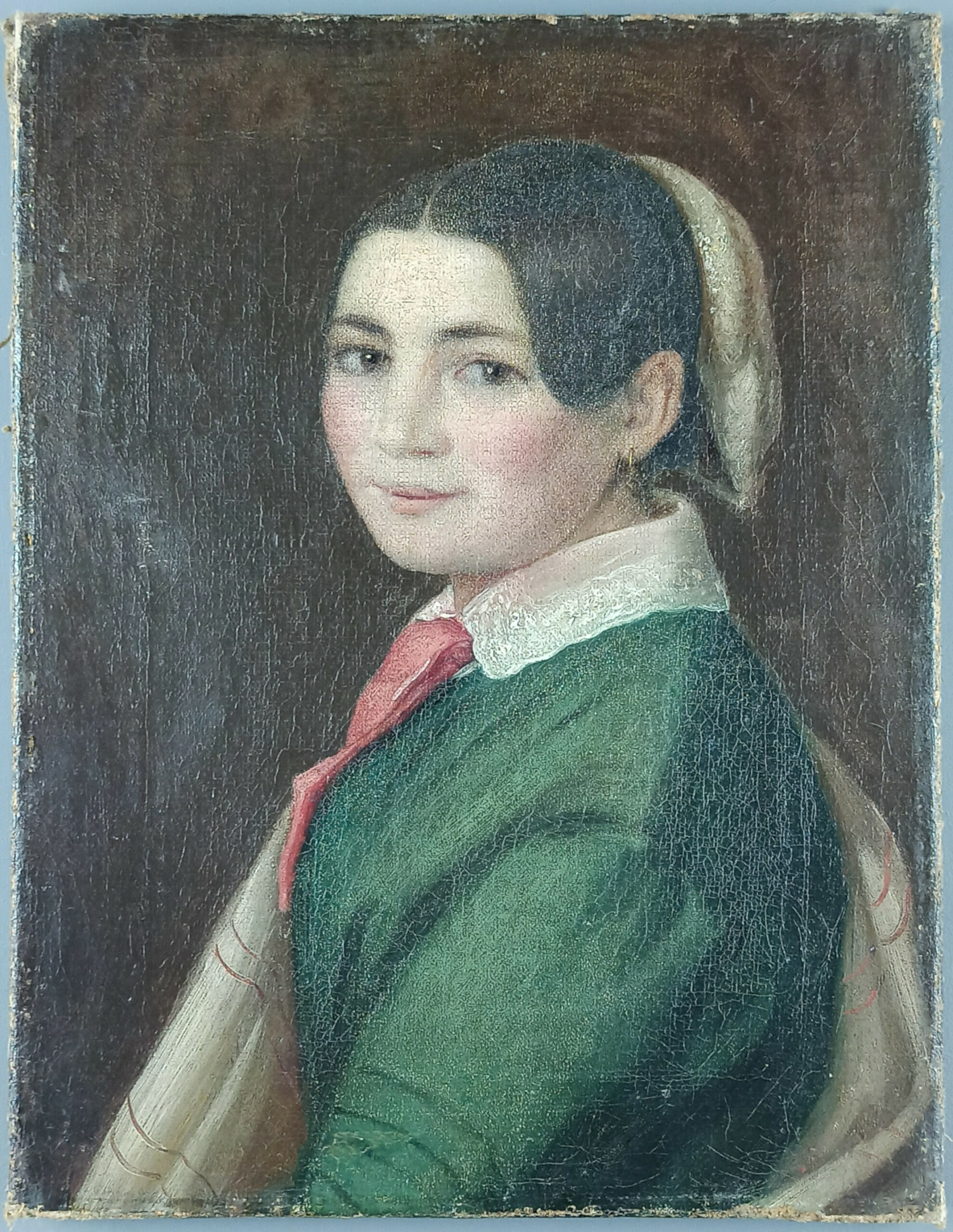 Huile sur toile (rentoilée), datée sur le châssis, pas de signature visible.